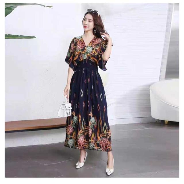 | ・ビーチやリゾートではやっぱりコレ! ・夏らしいエキゾチックな雰囲気のロングワンピース。 ・ビーチ・リゾートシーンにピッタリの大人リゾートワンピースです。 ・シャープな印象を与えるVネックはすっきりしたお顔を作ってくれます。 ・締め付け感を抑えたウエストのシャーリングでスタイルアップ。 ・水着の上から羽織ってそのまま海やプールへ! | |