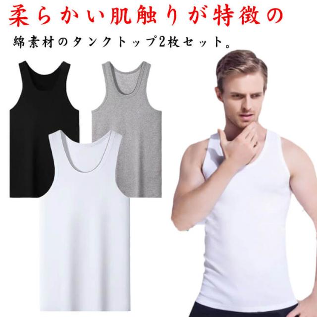 綿 タンクトップ インナー 2枚セット 透けない Tシャツ専用インナー 吸汗速乾 下着 肌着 ノースリーブ 男性 抗菌防臭 メンズ 紳士 Uネック 綿 白 2枚セット 無地 コットン シンプル 黒 オフィス 仕事