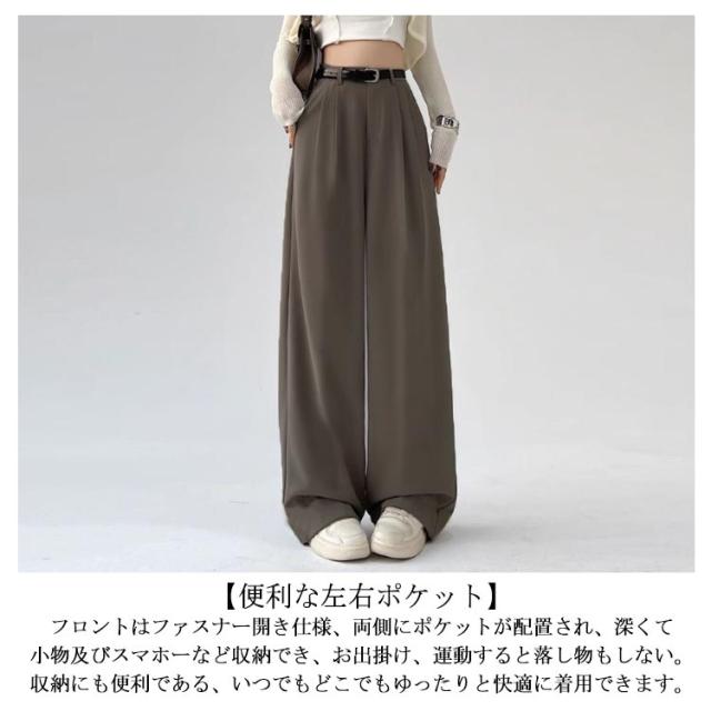 | 【万能なワイドパンツ】ゆったりしたデザインでカジュアル感があり、レジャーにも通勤にも使いやすくなるワイドパンツ、生地感は柔らかくて触り心地が良く、通気性も優れ、長時間の着用でも蒸れることがなく、着心地が抜群です。 【体型カバーとして活躍できる】ウエスト部位のシワがつなぎの役割を果たし、ウエストとお腹を視覚的に調和させ、腰やヒップ周りをスッキリ印象に、簡単に下腹を隠してくれます。ワイドパンツのデザインで脚長見せも抜群。 【便利な左右ポケット】フロントはファスナー開き仕様、両側にポケットが配置され、深くて小物及びスマホーなど収納でき、お出掛け、運動すると落し物もしない。収納にも便利である、いつでもどこでもゆったりと快適に着用できます。 【ファッションデザイン】ハイウエスト タイプで脚長効果抜群。 ウエスト ゴム パンツ レディース とファスナーで構成され、窮屈さを感じない履き心地。 ゆったりめの仕様で動きやすく、ボディカバーで脚長効果抜群! ワイドパンツ 、スーツ用の パンツ としても着用できる、ゆったりとした レディースパンツ です。 【適用場面】オシャレなロングパンツは、通勤、ビジネス、通学、普段着、部屋着、結婚式、デート、お出かけな ど様々な場合で大活躍します。シャツ、セーター、チェスターコートを組み合わせがやすいしてくれます。 | |