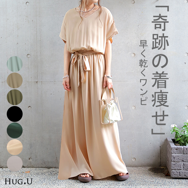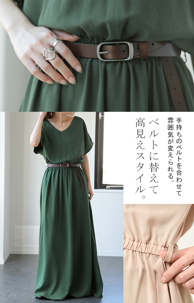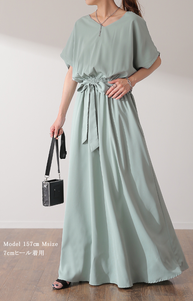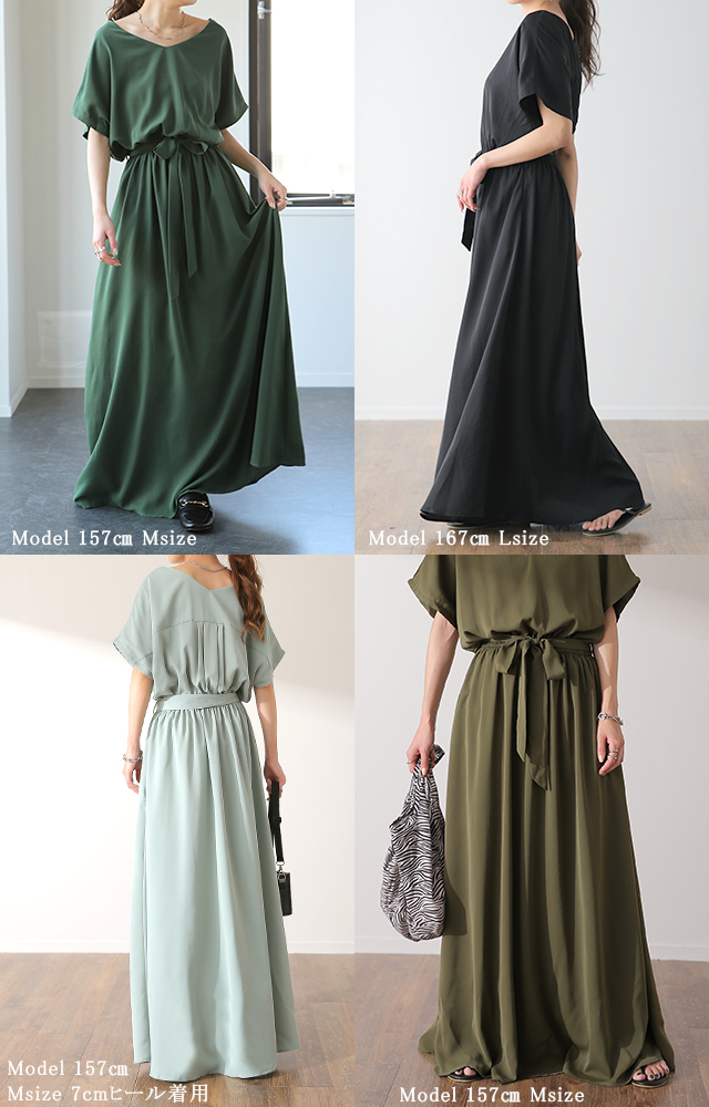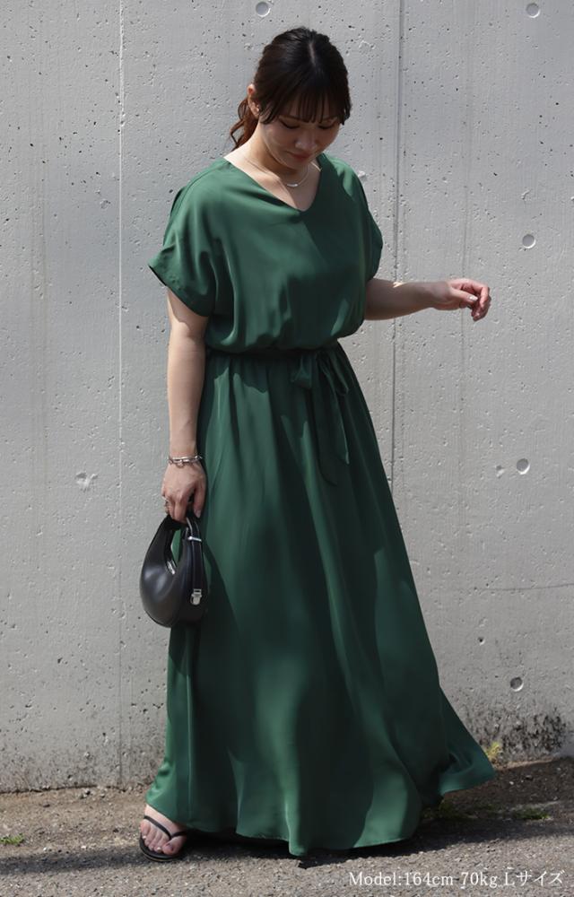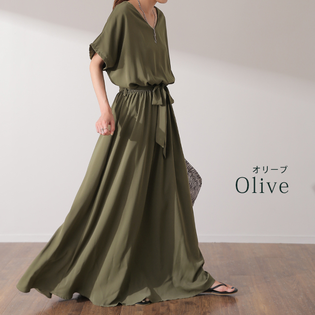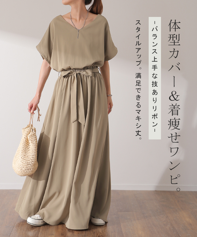 【2000円OFF】 アウトレット ワンピース マキシ丈ワンピース マキシワンピース ロングワンピース レディース マキシワンピ ロングワンピ 半袖 ワンピ 体型カバー 無地 シンプル 半袖 フレンチスリーブ きれいめ Vネック ウエストマーク 大きいサイズ 夏 秋 秋新作