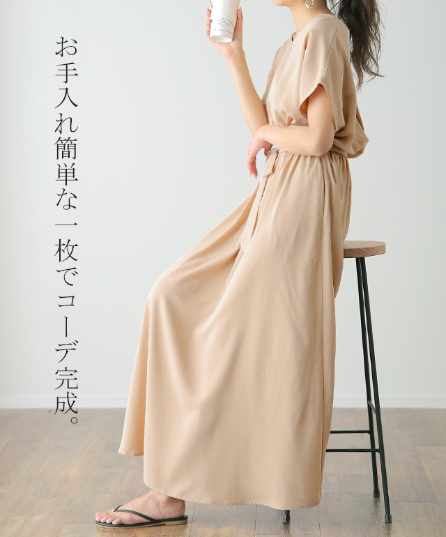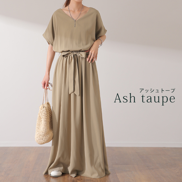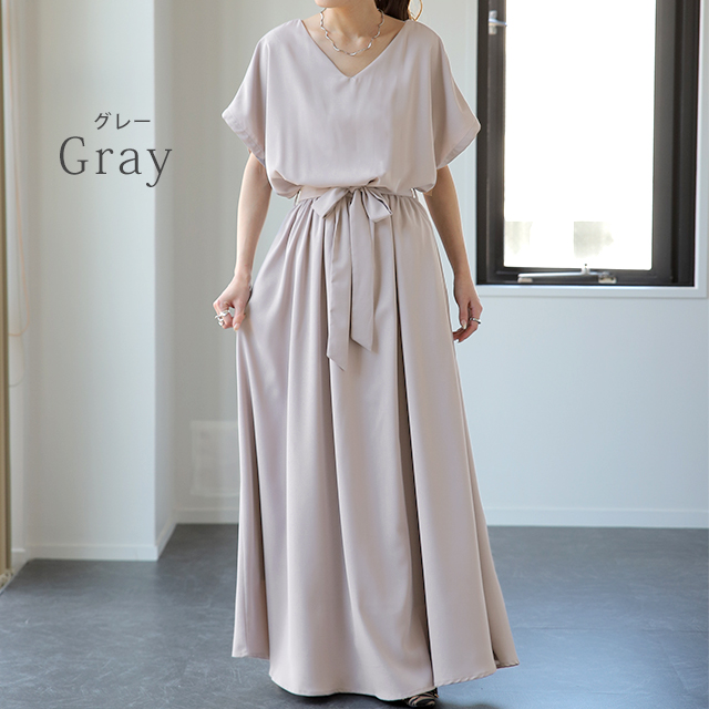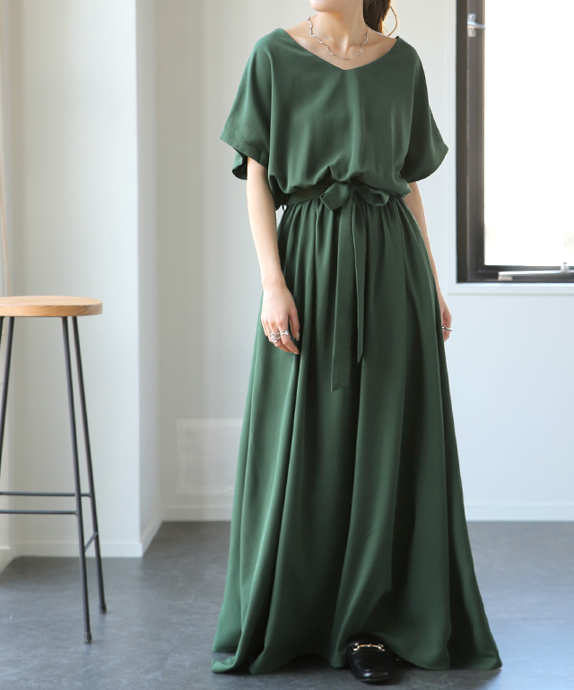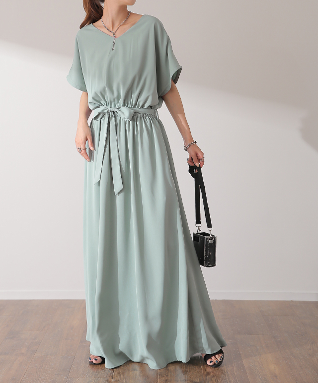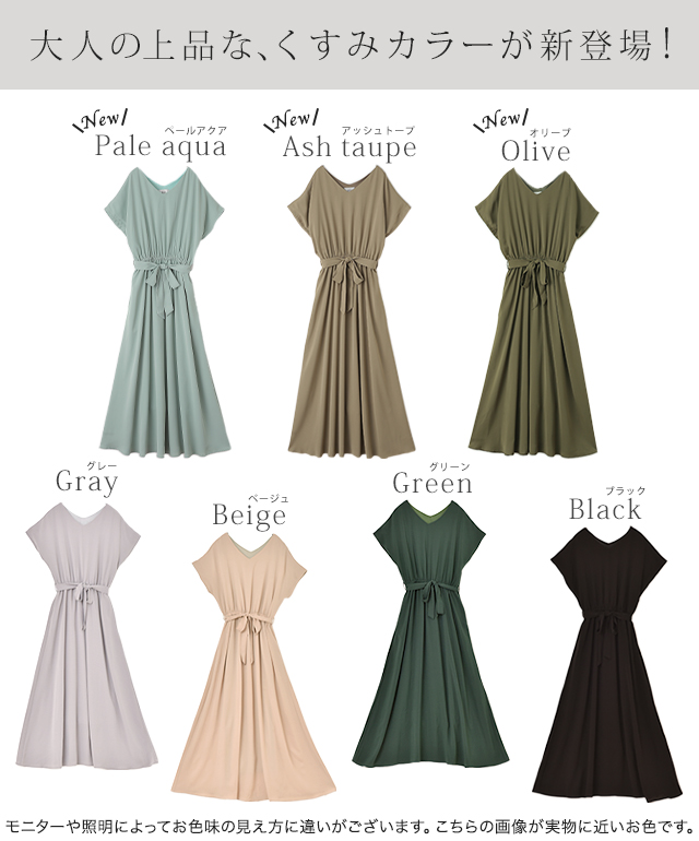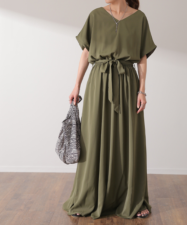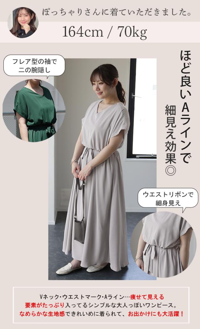 【2000円OFF】 アウトレット ワンピース マキシ丈ワンピース マキシワンピース ロングワンピース レディース マキシワンピ ロングワンピ 半袖 ワンピ 体型カバー 無地 シンプル 半袖 フレンチスリーブ きれいめ Vネック ウエストマーク 大きいサイズ 夏 秋 秋新作