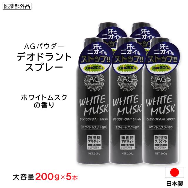 制汗剤 デオドラントスプレー ホワイトムスク 大容量 200g ×5本 Ag 制汗スプレー 日本製 医薬部外品