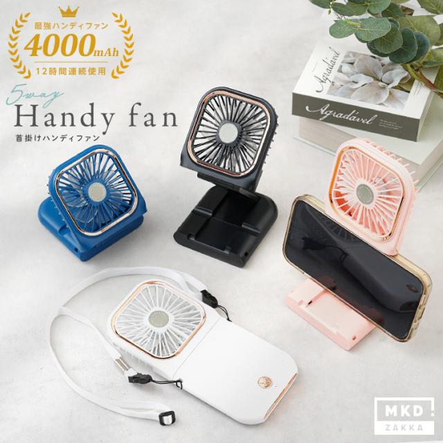 ハンディファン 首かけ ネックファン 子供 コンパクト 卓上扇風機 軽量 折りたたみ 卓上 手持ち モバイルバッテリー 4000mAh スマホスタンド 小型扇風機 携帯扇風機 小型 5way 長時間 充電 ストラップ付 Type-C 可愛い