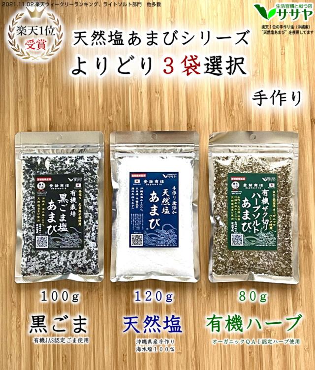 【よりどり3袋 大きいほう】天然塩 あまび 黒ごま塩 ハーブソルト 有機 天日塩 オーガニック 無添加 送料無料 生活習慣と戦う店ササヤ yys