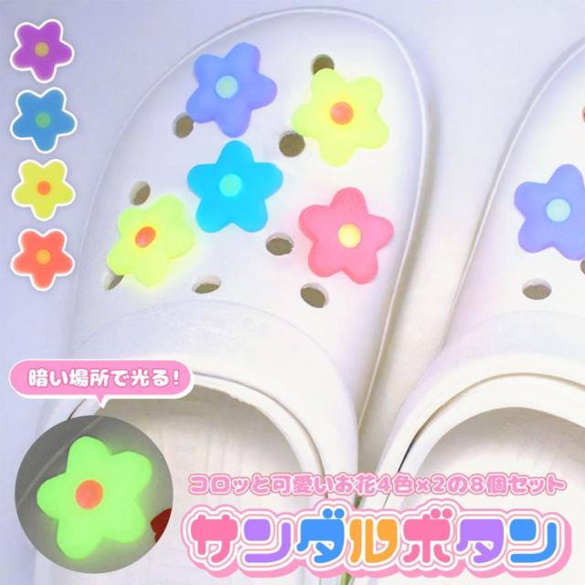 クロックス crocs サンダル パーツ フラワー 花 蓄光 発光 ジビッツ かわいい おしゃれ キッズ 子供 女の子 シューパーツ 夜道 光る シューズチャーム サンダルボタン ポップ カラフル 8個入り