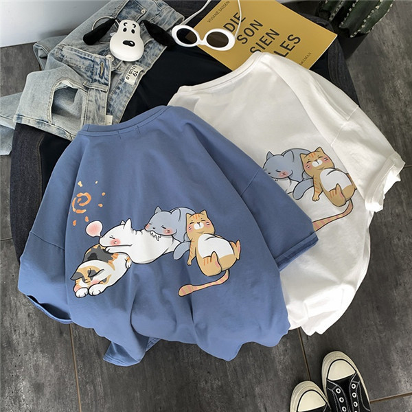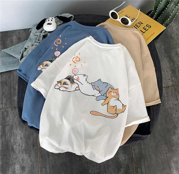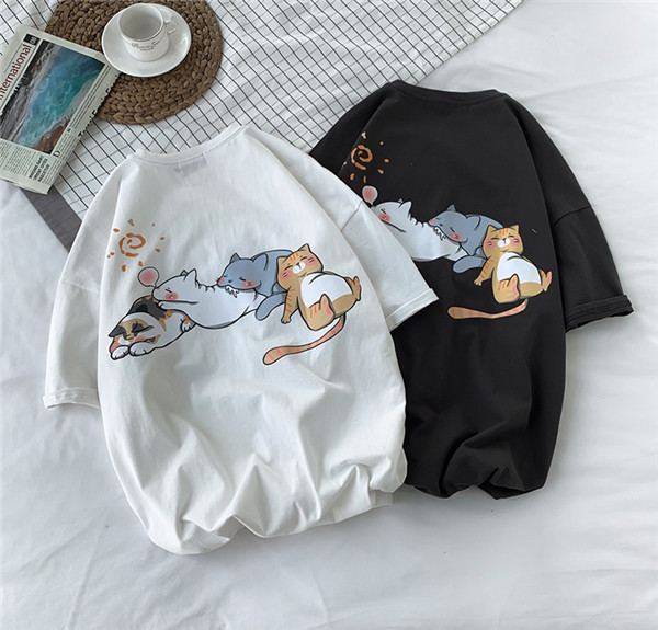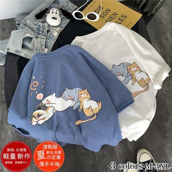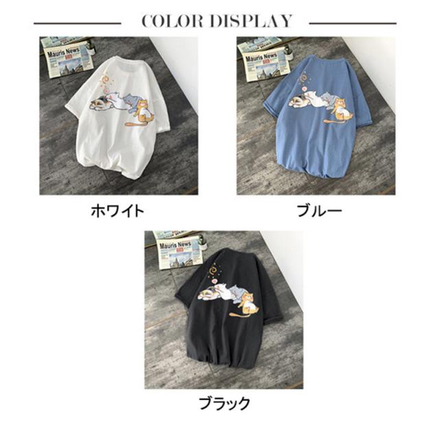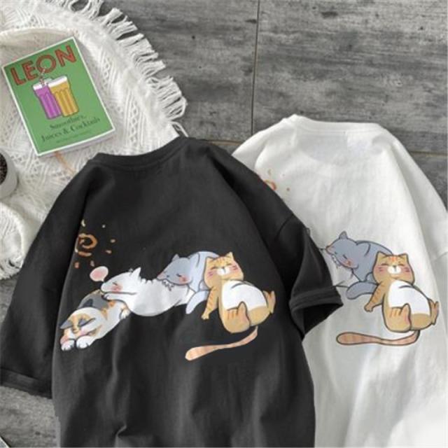 Tシャツ メンズ カジュアルシャツ トップス 夏 綿 半袖 猫柄 可愛い シャツ 薄手 スポーツ シンプル おしゃれ 人気 ワークシャツ 送料無料