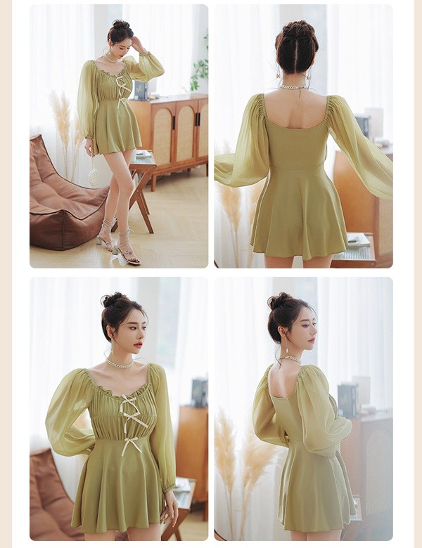 水着 レディース ワンピース 体型カバー水着 大きいサイズ ぽっちゃり かわいい おしゃれ 無地 フリル 袖 ハイウエスト 露出控えめ カットアウト カッティング 二の腕 お尻 太もも お腹 カバーアップ 20代 30代 40代 ママ水着 L 2XL 3XL 4XL df092zbzbzu