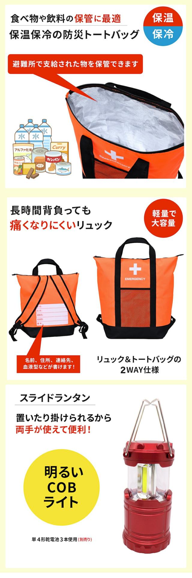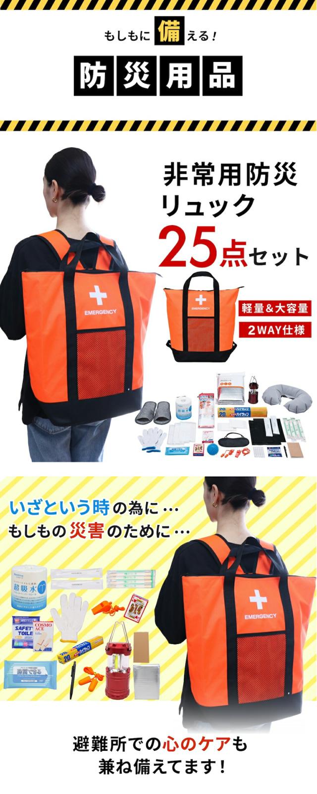| 商品名 | 非常用防災保冷温リュック&トートバッグ 25点セット |