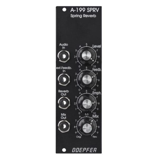 3本のスプリングを使用したリバーブです。フィードバックレベルはCVでもコントロール可能。EMPHASISパラメーターは、リバーブ音の中域(2kHz周辺)を強調することで、独特のサウンドを生み出します。リバーブタンクは別体式となっており、ノイズの影響を受けにくい位置を探して設置することが可能です。