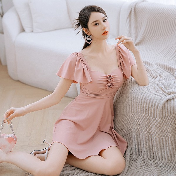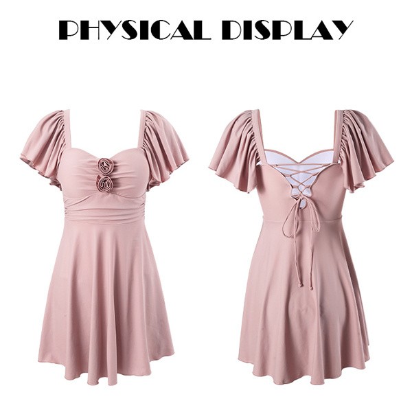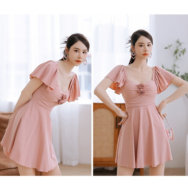 水着 レディース ワンピース 体型カバー水着 大きいサイズ ぽっちゃり かわいい おしゃれ 無地 フリル 袖 ハイウエスト 露出控えめ カットアウト カッティング 二の腕 お尻 太もも お腹 カバーアップ 20代 30代 40代 ママ水着 M L XL 2XL df086zbzbzu