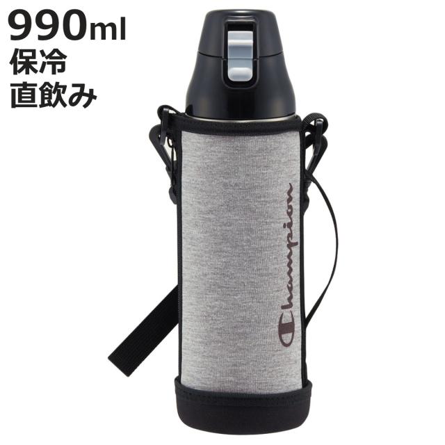 水筒 990ml ダイレクトステンボトル チャンピオン 保冷専用 ( 保冷 直飲み カバー付き ステンレスボトル ダイレクトボトル 子供 直のみ すいとう ワンタッチ ボトル ショルダーベルト付き 真空二層構造 広口 )