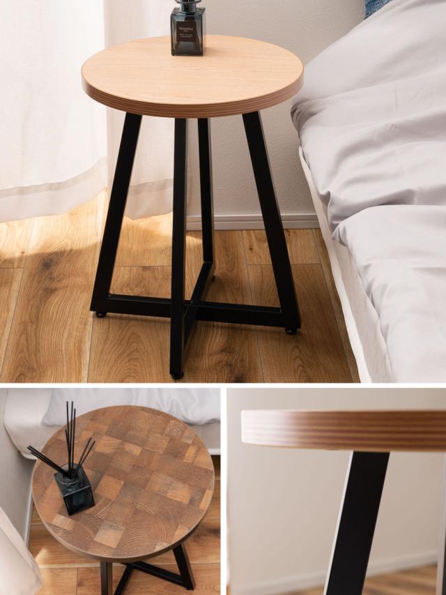 温かみのある3パターンの天板にスチールのフレームを組み合わせた、スタイリッシュなサイドテーブルです。異素材同士のインダストリアルな雰囲気がインテリアとして存在感を発揮します。