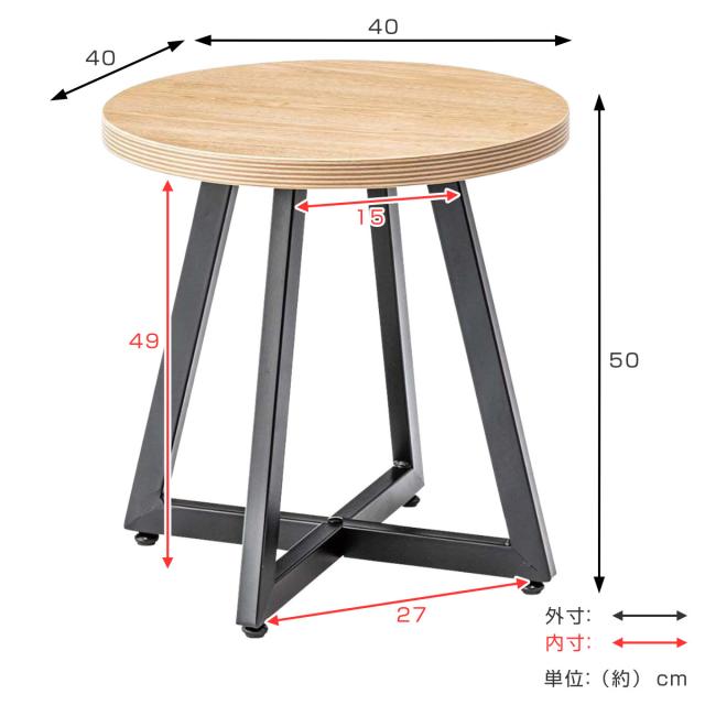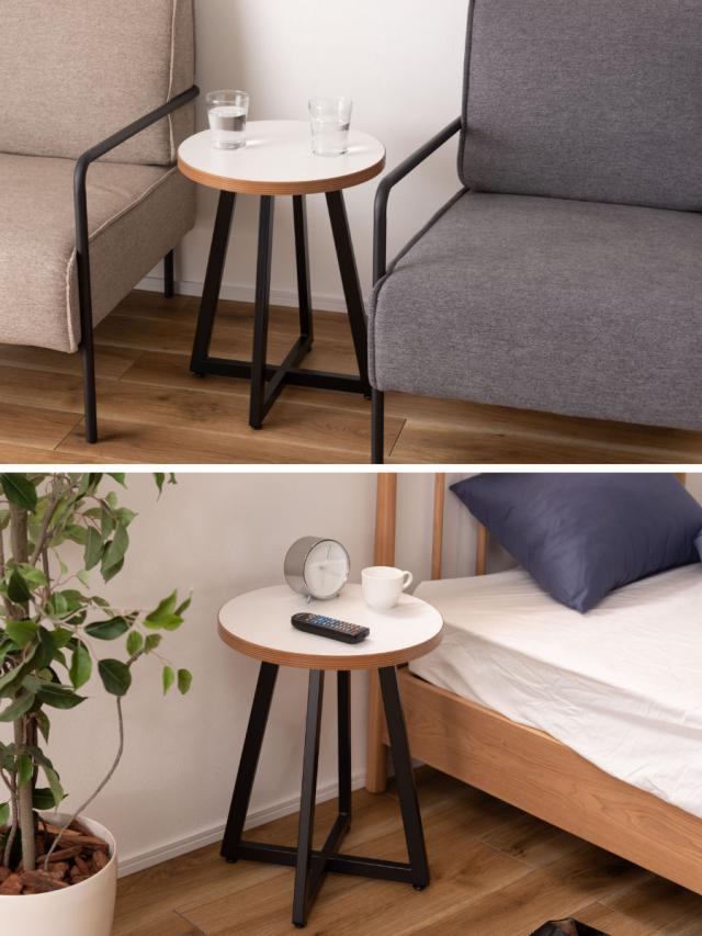 サイドテーブル 円型 直径40cm Sサイズ ラウンドテーブルS ( ナイトテーブル ミニテーブル ソファ ベッド 横 丸 丸テーブル 円形 木目調 スチール脚 )