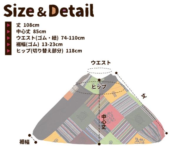 丈108cm 中心丈85cm ウエスト(ゴム・紐)74-110cm