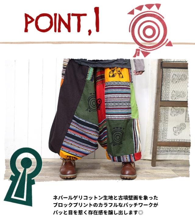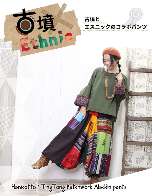 サルエル ワイド バギー イージー 【はにコット×ティントン】 古墳パッチワークアラジンパンツ 2025年秋冬