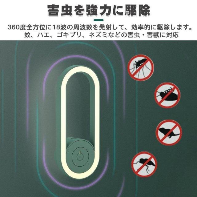 害虫駆除器 PSE認証済み 光感知常夜灯 フライザッパー 蚊取り器 虫除け器 蚊除け LED ナイトライト 超音波USBランプ サウンドコントロールナイトライト