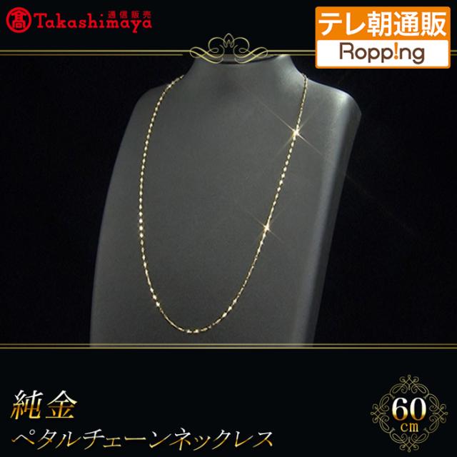 高島屋純金ペタルチェーンネックレス(60cm) テレビ朝日 テレ朝通販 ロッピング 24金 K24 造幣局刻印入り 高島屋保証書