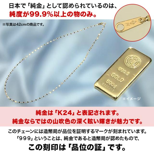 純金は「K24」と表記されます。純金ならではの山吹色の深く眩い輝きが魅力です。