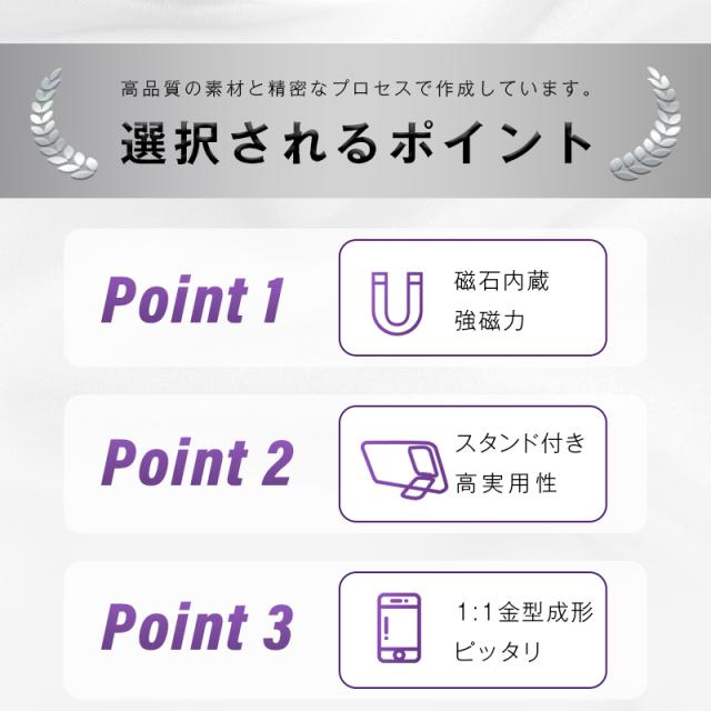 本製品はケースとスタンドを一体化することにより、抜群な保護性能のほか、機能性も実用性も十分で、コスパ最高の一品です。カメラの周囲を覆うメタリックパーツ(スタンド)が、動画視聴時やチャット電話などの時、便利に使用できます。また折り畳み式デザインのため、使用しない場合は閉じた状態で固定され、普通のスマホケースとして使用できます。ペースを取らず、ポケットや鞄に簡単に入れられます。