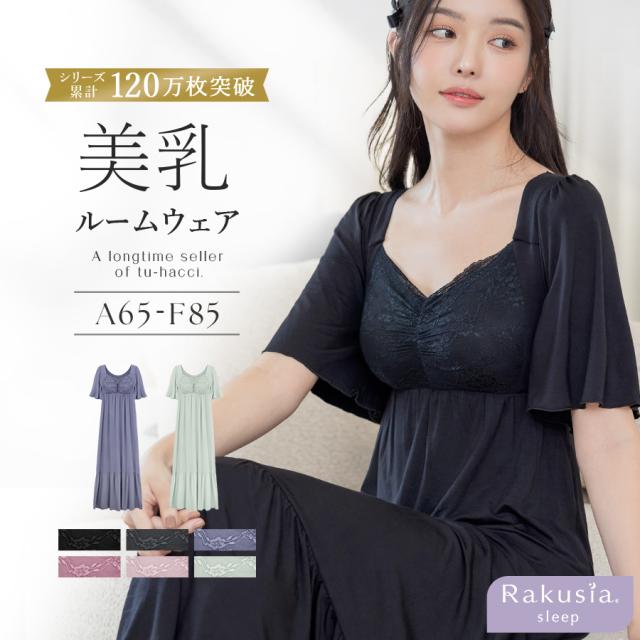 【着るだけバストケア】ルームウェア ラクシアナイトブラワンピース 半袖ロング丈 育乳ナイトブラ ルームウェア カップ付き 半袖 部屋着 ノンワイヤー マキシワンピ マタニティ パジャマ レディース 授乳ブラ 育乳 産前 産後 春新作 ツーハッチ tu-hacci