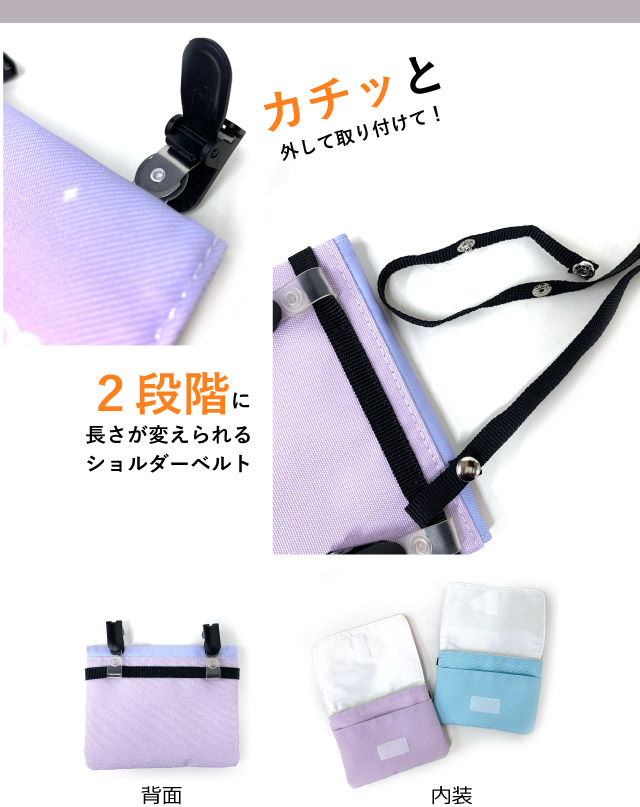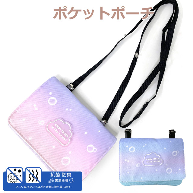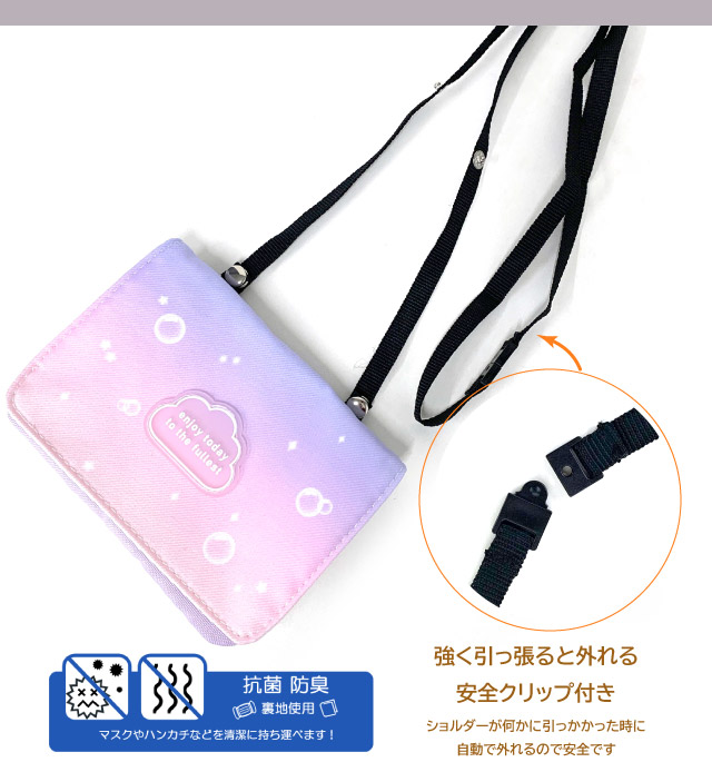 移動ポケット 女の子 ショルダー Pirica nonno クラウドラバー フラットショルダー mbq-531 抗菌 防臭 ポケットポーチ ポシェット キッズ 小学生 高学年 低学年 かわいい クリップ ポケット ポーチ 移動 マスク ハンカチ ポケットのない マスク入れ 入学 女子 水色 紫