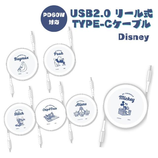 タイプCケーブル リール式 巻き取りケーブル 1m ディズニー 充電 データ かわいい ミッキーマウス くまのプーさん Type-C ケーブル PD60W 100cm 充電器 伸縮