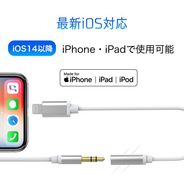 このiPhoneイヤホン変換アダプターは、充電ポートを経由してLightning3.5mmオーディオジャックへ音声を出力することができます。 iOS14以降のiPhoneだけでなく、iPadにも対応しているため、幅広い機種でお使いいただけます。