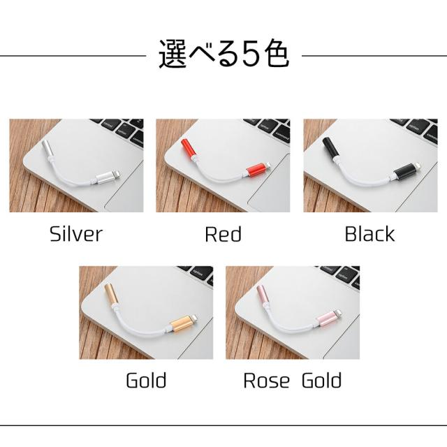iPhone 3.5mm変換ケーブルは、シルバー、レッド、ブラック、ゴールド、ブルーの5色展開。 どんなデバイスにも合わせやすいカラーバリエーションで、おしゃれに楽しめます。