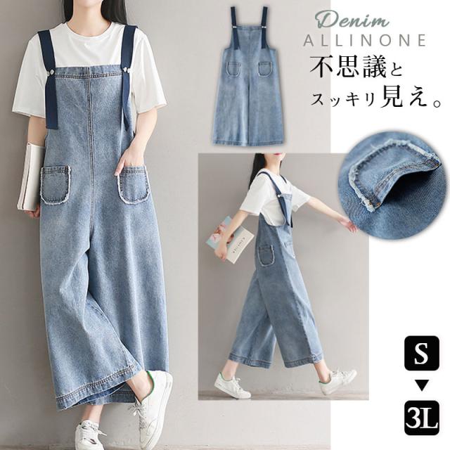 24H限定!クーポン利用で10%OFFサロペット レディース デニム 春秋 オールインワン オーバーオール サルエルパンツ 大きいサイズ シンプル ロング丈 ゆったり 着痩せ ワイドパンツ