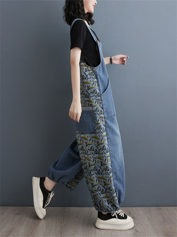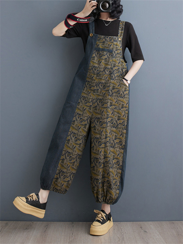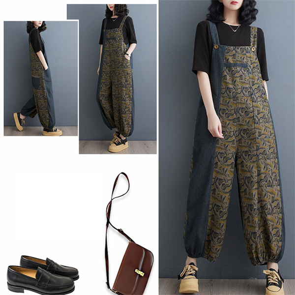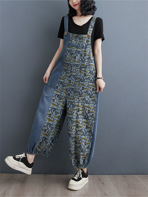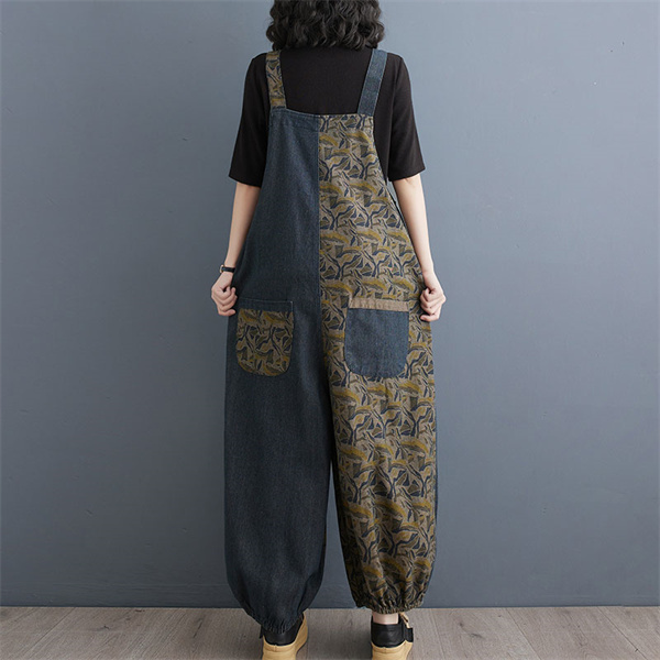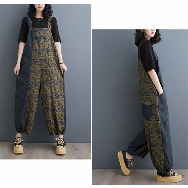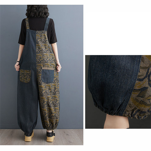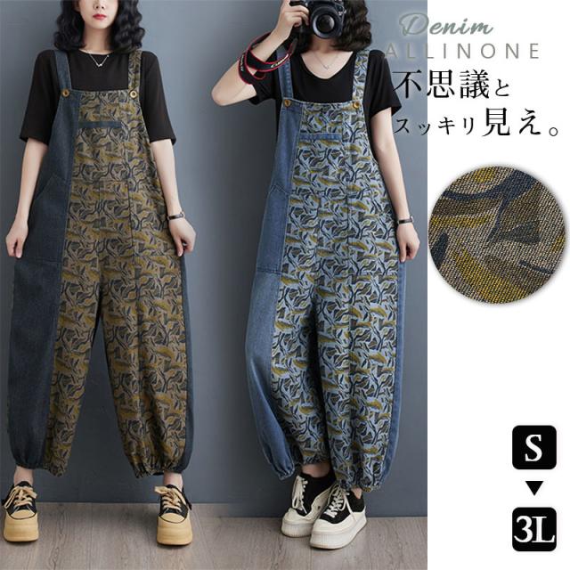24H限定!クーポン利用で10%OFFサロペット レディース デニム バイカラー 春秋 オールインワン オーバーオール サルエルパンツ 大きいサイズ シンプル ロング丈 ゆったり 着痩せ