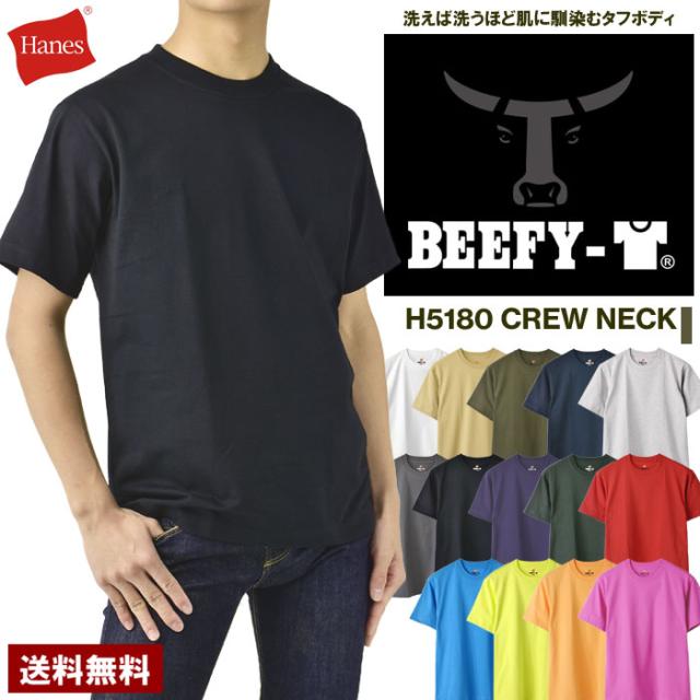 Tシャツ 無地 半袖 メンズ ヘビーオンス BEEFY-T ビーフィーT Hanes ヘインズ クルーネック コットン100% タフ 頑丈 TAGLESS H5180 正規品【H1L】【パケ1】