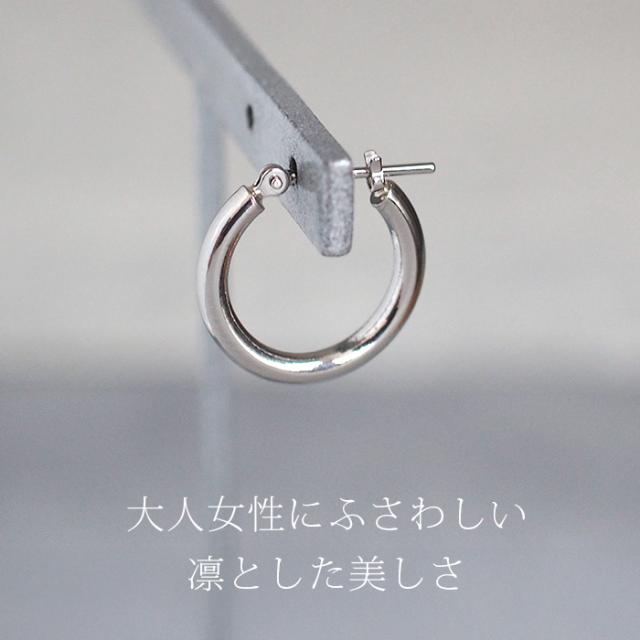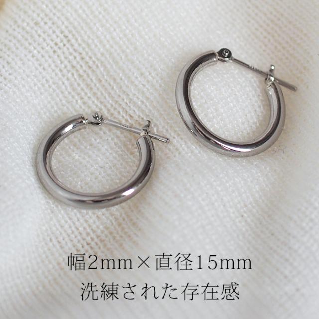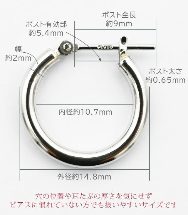 【ジュエリーの町 山梨甲府製】プラチナ フープピアス 細い 小さい PT900 幅2mm×直径15mm アレルギー対応 日本製 品質保証書 おすすめ 片耳 1個 かわいい