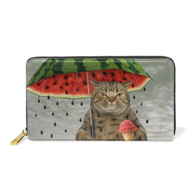 AOMOKI 財布 長財布 レディース 本革 大容量 ラウンドファスナー 通勤 通学 猫柄 スイカ 雨