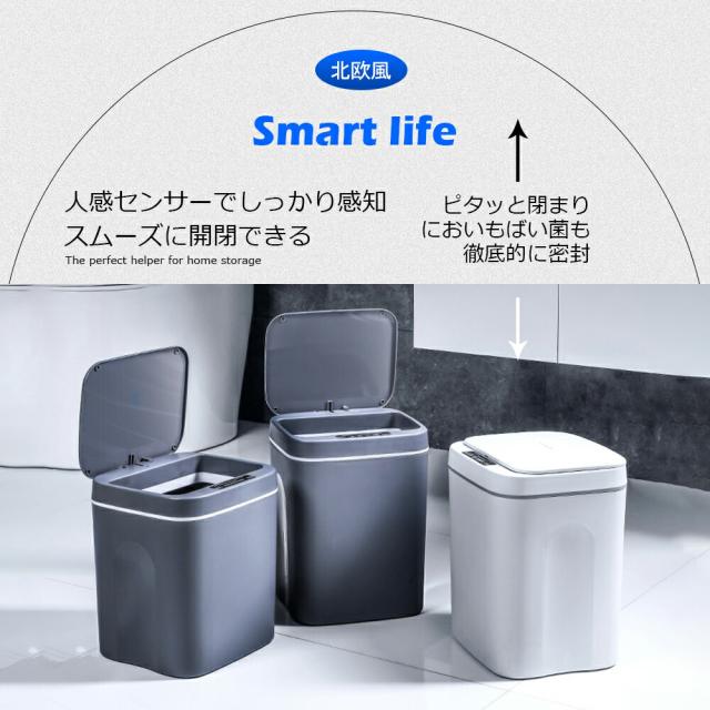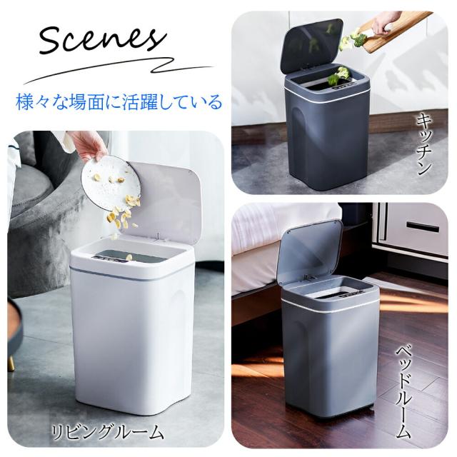 『送料無料』ゴミ箱16L 自動開閉ゴミ箱 ゴミ箱 自動 ダストボックス 自動ゴミ箱 センサー付きゴミ箱 ごみ箱 くずかご ごみばこ おしゃれ キッチン フタが手に当たらない ニオイ漏れにくい オシャレ モダン シンプル