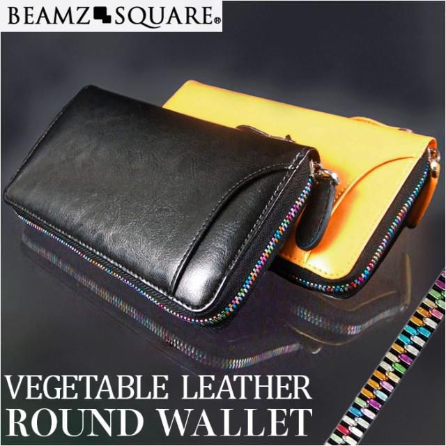 長財布 メンズ ブランド 通販 長 財布 ロングウォレット さいふ サイフ ウォレット 革 レザー ラウンドファスナー 本革 牛革 おしゃれ 男性 ベジタブルレザー BEAMZ SQUARE ビームズスクエア BS-22902 メンズ財布 贈り物 ギフト