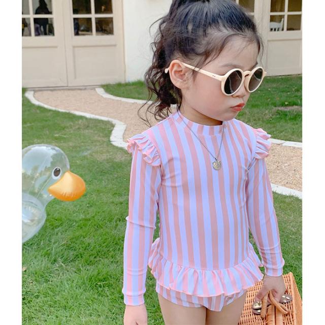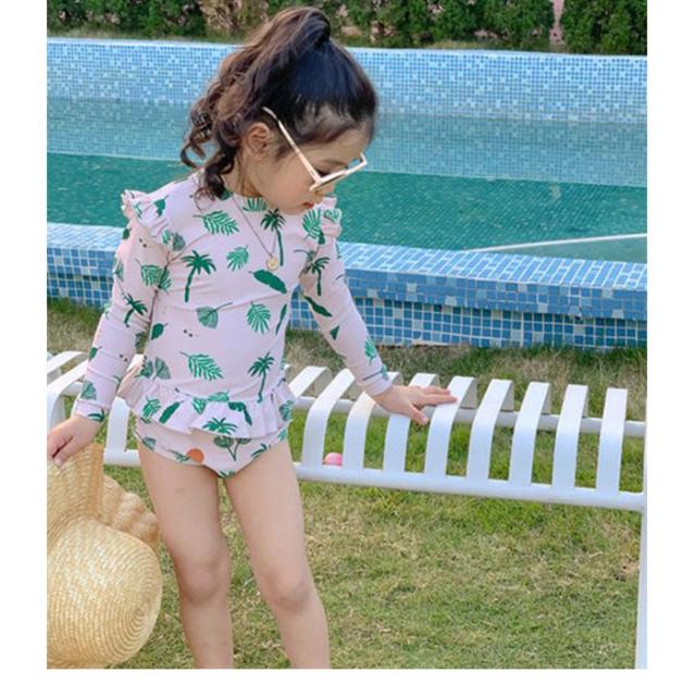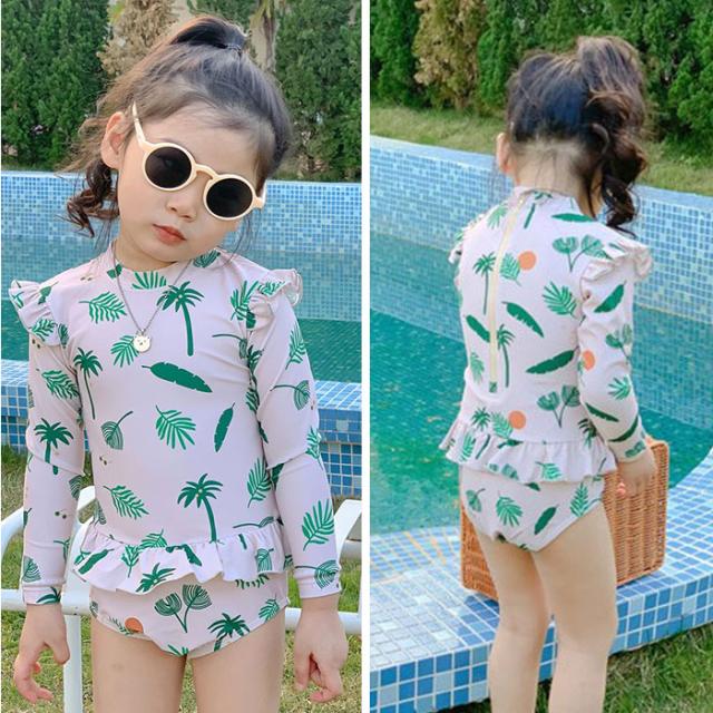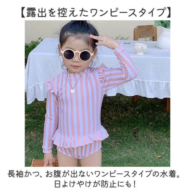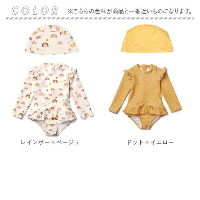 キッズ 水着 女の子 ワンピース 通販 スイムウェア 長袖 スイムキャップ ラッシュガード 女児 子供 フリル 紫外線対策 日焼け対策 シンプル かわいい 速乾性 スポーツウェア