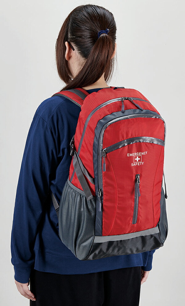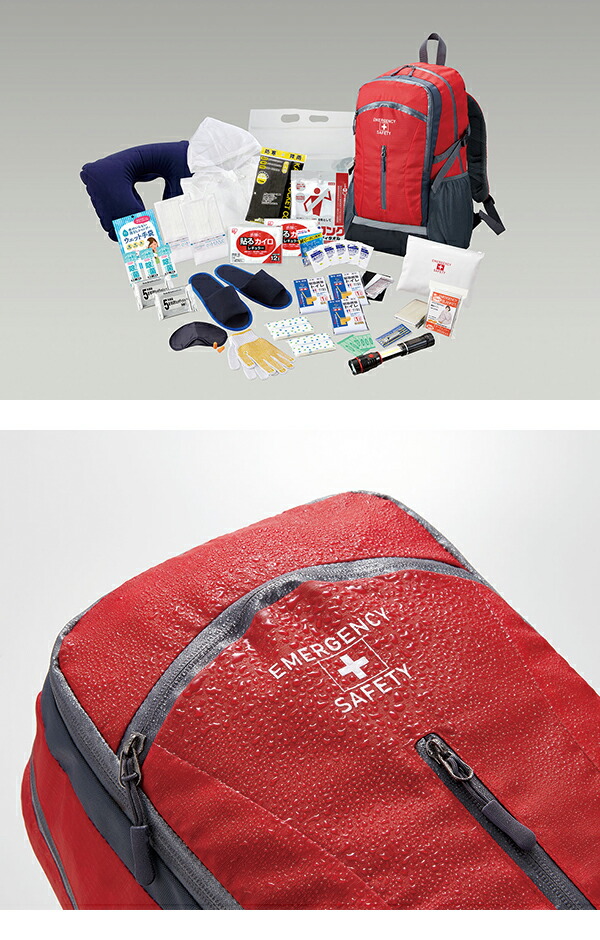 避難セット入りの撥水生地を使用した防災リュック