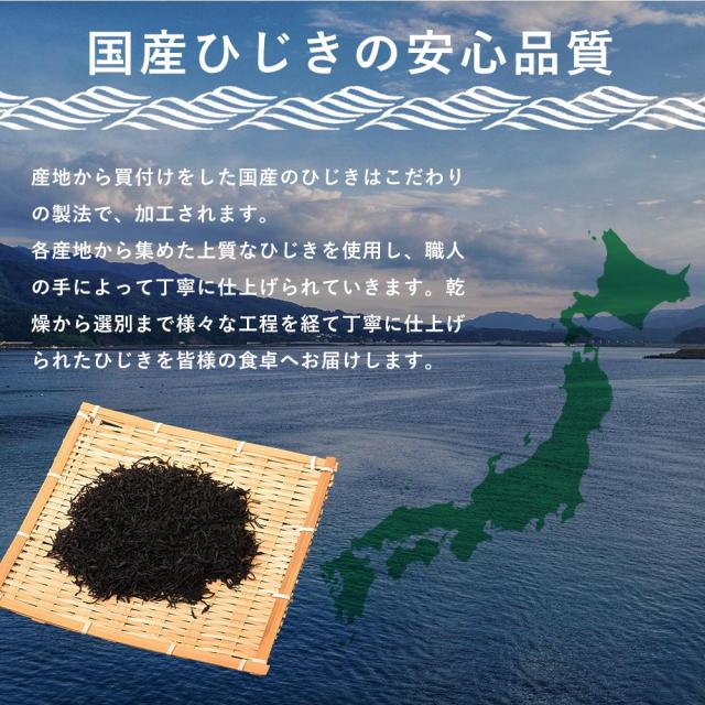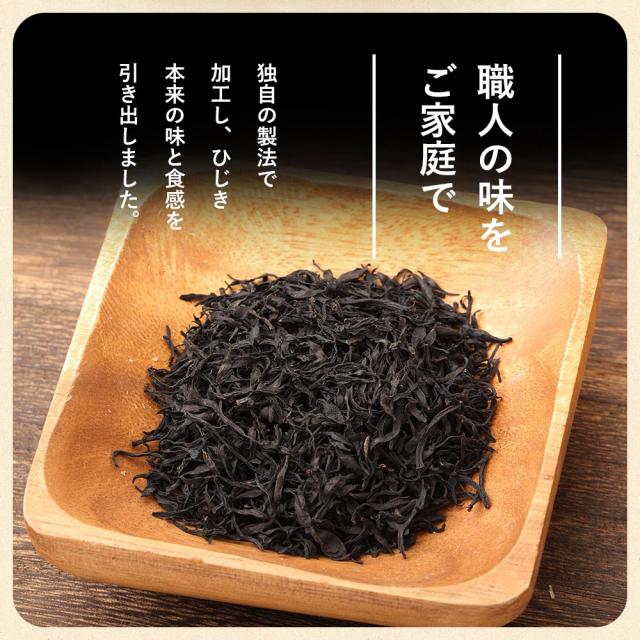 | お召し上がり方 | ひじきをたっぷりの水に浸します。 ひじきがもどったらザルにとって軽くみずあらいし、水気を良く切ってご使用下さい。 |