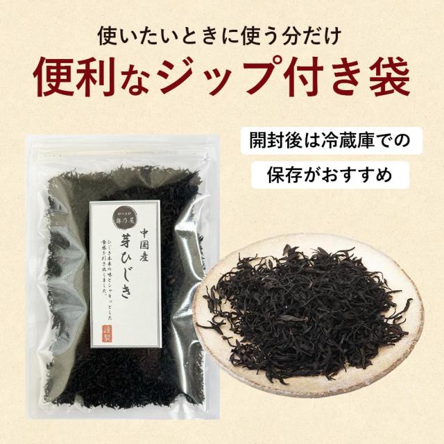 | お召し上がり方 | ひじきをたっぷりの水に浸します。 ひじきがもどったらザルにとって軽くみずあらいし、水気を良く切ってご使用下さい。 |