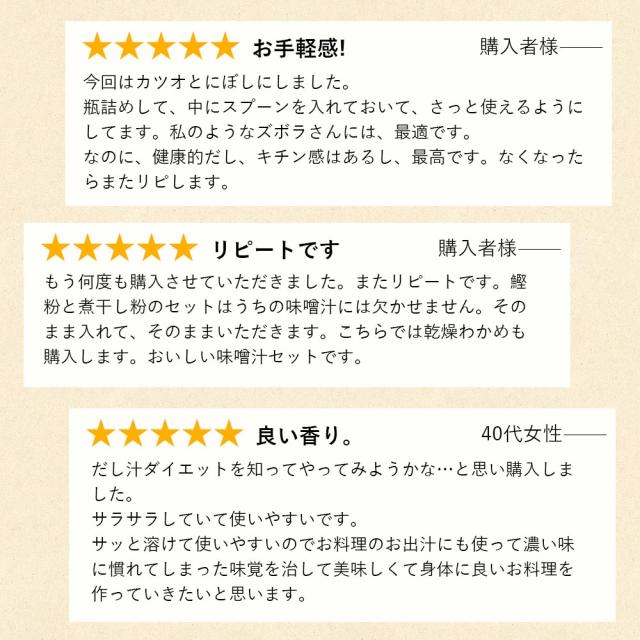 | 内容量 | 【かつお粉】【煮干し粉末】 100g |