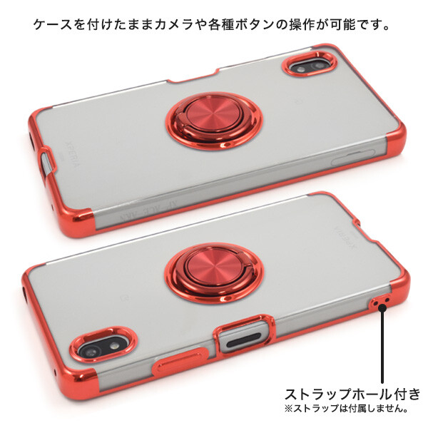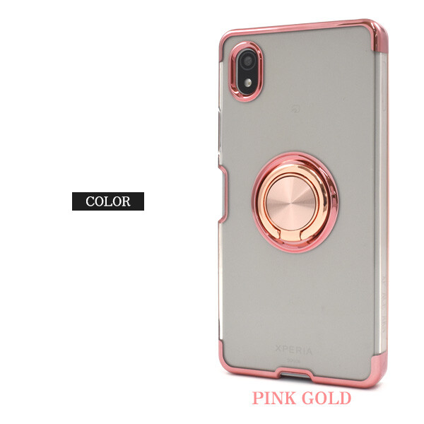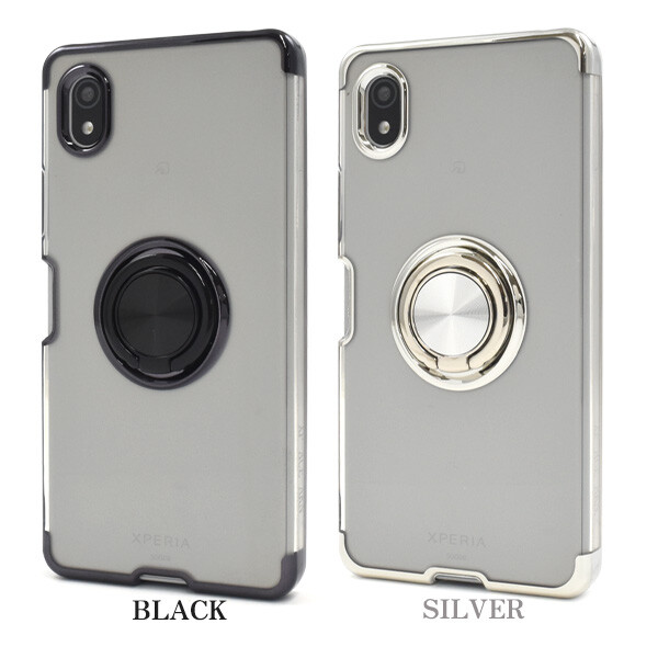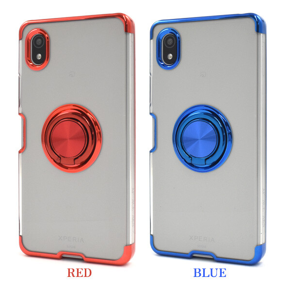 落下防止用のスマホリングが付いた、Xperia Ace III 専用のメタルカラーバンパーソフトクリアケースです。