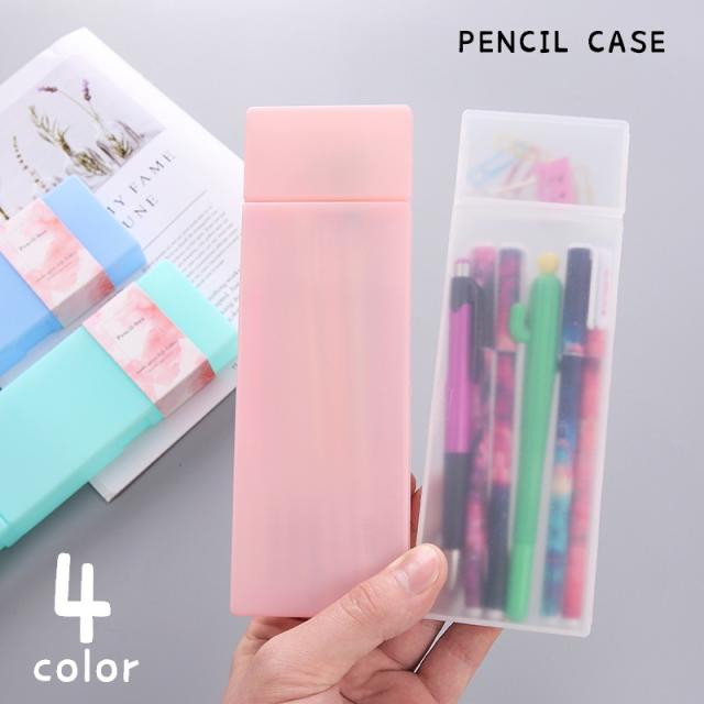ペンケース 筆箱 筆入れ 箱型 小物入れ 文房具 筆記用具入れ 文具 仕切りあり 消しゴム入れ スクエア ボックス型 クリアカラ