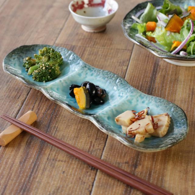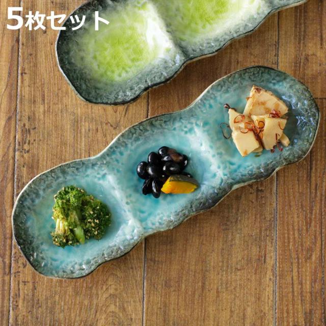 仕切り皿 28cm プレート 3つ仕切り KANADE 陶器 同色5枚セット ( 電子レンジ対応 皿 お皿 3連 和食器 和風 個性的 醤油皿 薬味皿 ソース 醤油 マヨネーズ お漬物 副菜 お浸し おしゃれ )