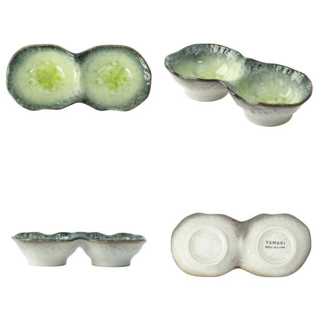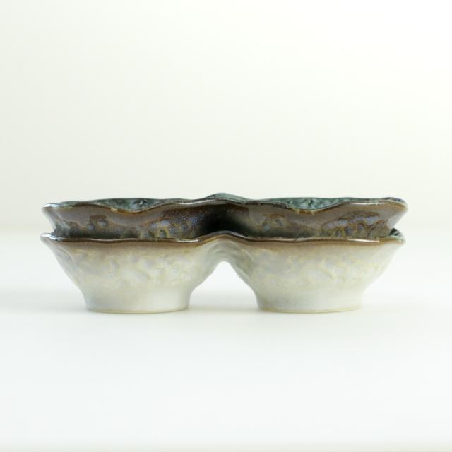 小鉢 2つ仕切り 19cm ボウル KANADE 陶器 ( 電子レンジ対応 鉢 2連 和食器 和風 個性的 醤油皿 薬味皿 ソース 醤油 マヨネーズ お漬物 副菜 お浸し おしゃれ )