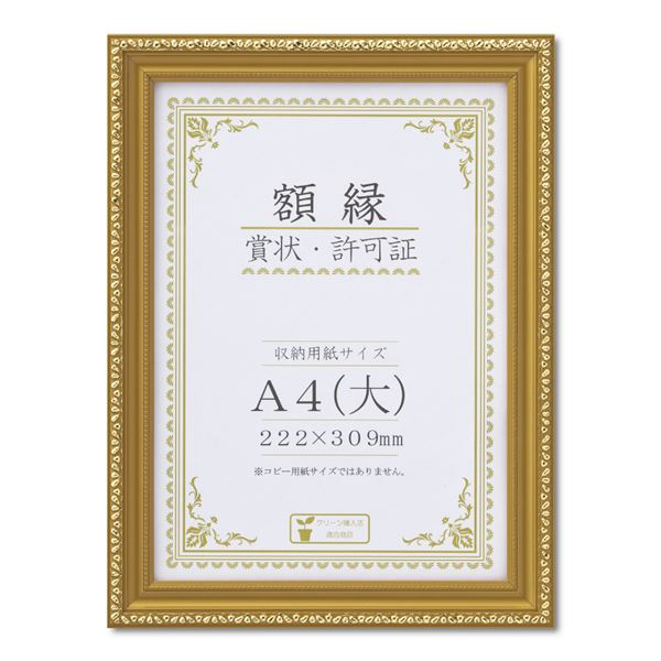 樹脂製 金色賞状額 金消 R 箱入 A4 大) 収納寸法:222×309mm 賞状 額 表彰状 卒業証書 免許書 許可証 額縁 フレーム