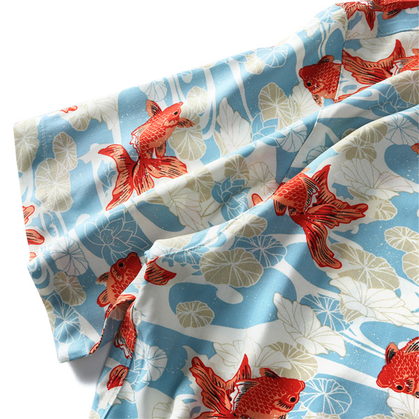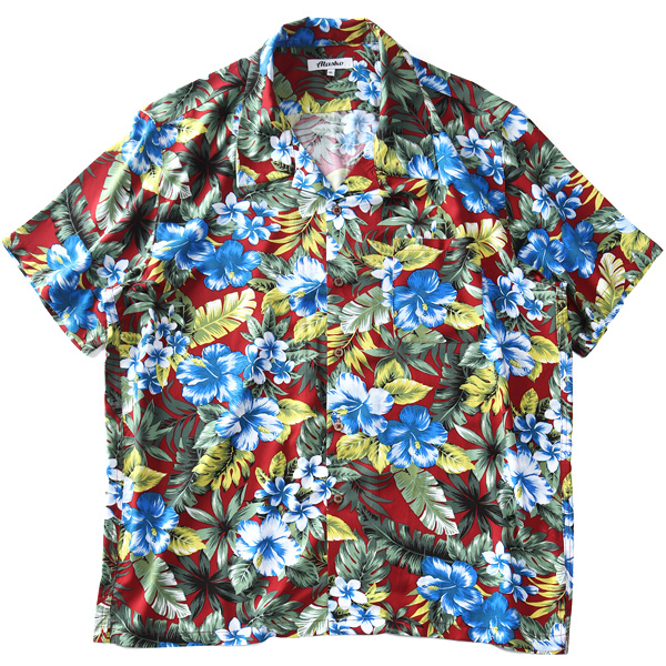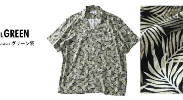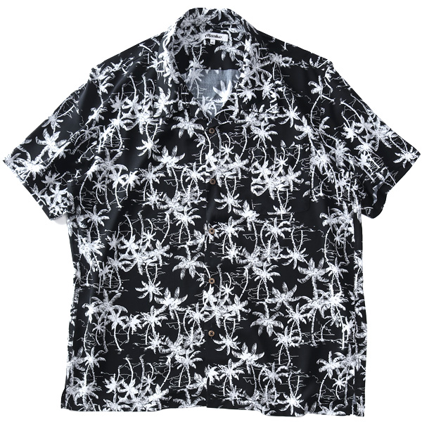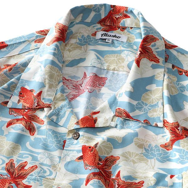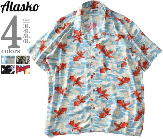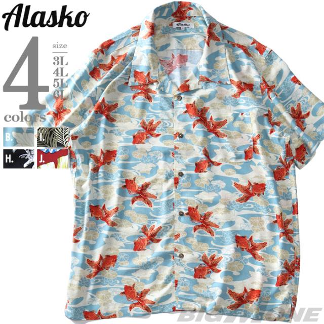 大きいサイズ メンズ ALASKO アラスコ 総柄プリント 半袖 レーヨン オープン シャツ アロハシャツ 38803