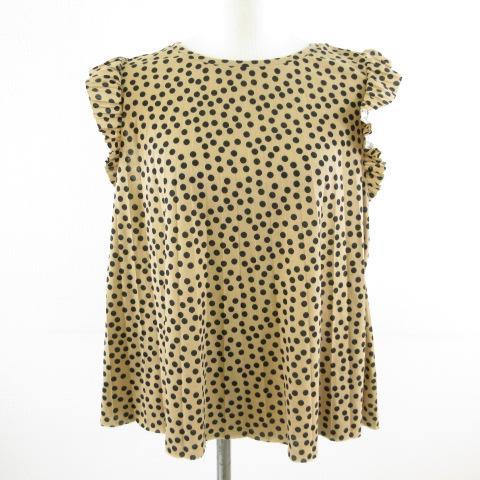 【中古】ストラディバリウス Stradivarius カットソー ノースリーブ フリル ドット 茶 黒 L *T119 レディース