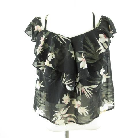 【中古】リエンダ rienda カットソー キャミソール シフォン 花柄 黒 F *T65 レディース