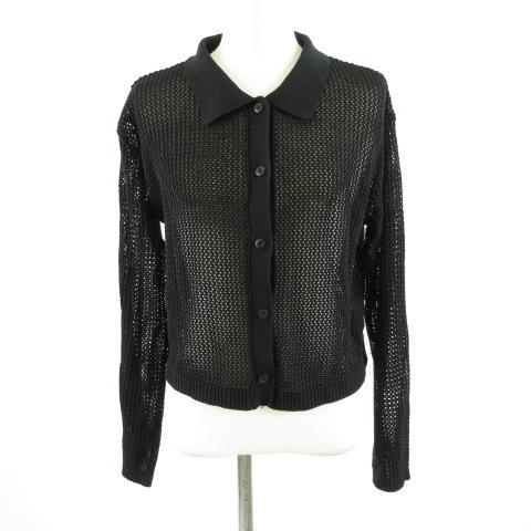 【中古】ジーユー GU 透かし編みニットカーディガン 長袖 黒 S *T192 レディース
