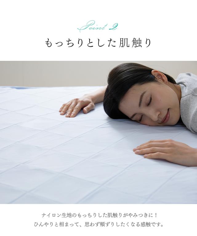 従来の商品に比べ、ミント加工を施しているのでひんやり感がグレードアップ、肌に触れると爽やかで冷たい素材の敷きパッドです。